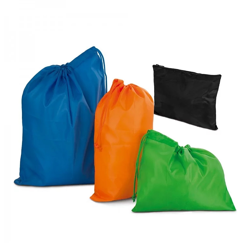 Kit necessaire em nylon com 4 unidades organizadoras de bagagens.