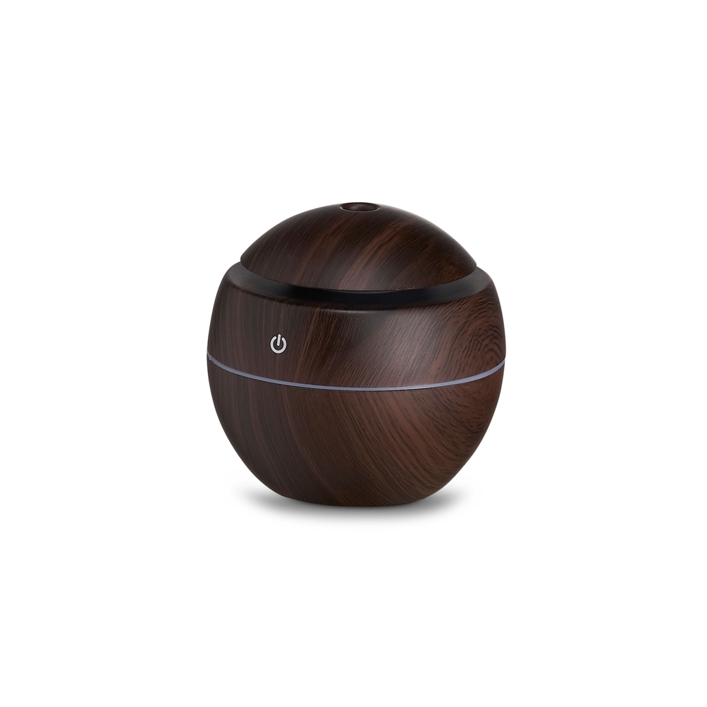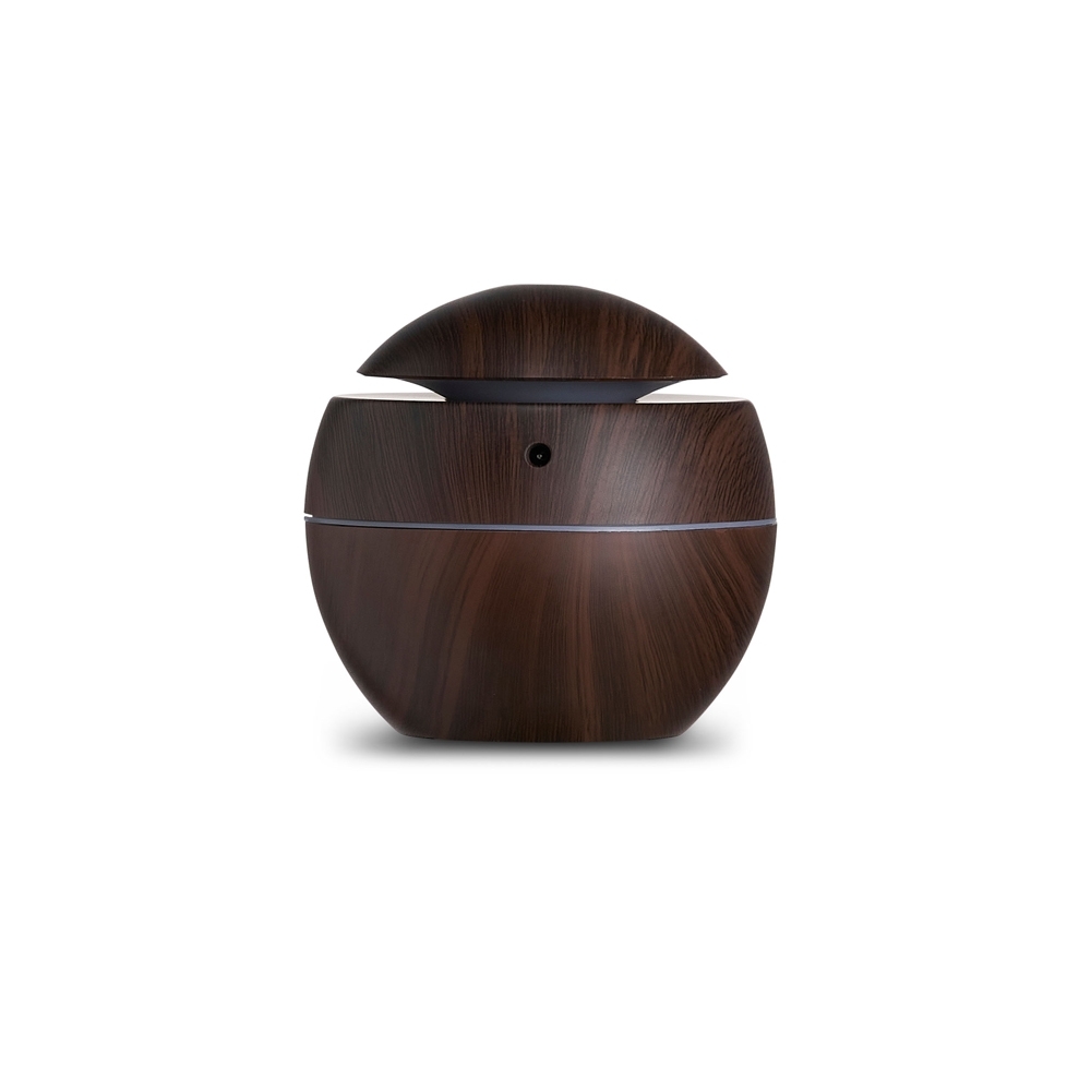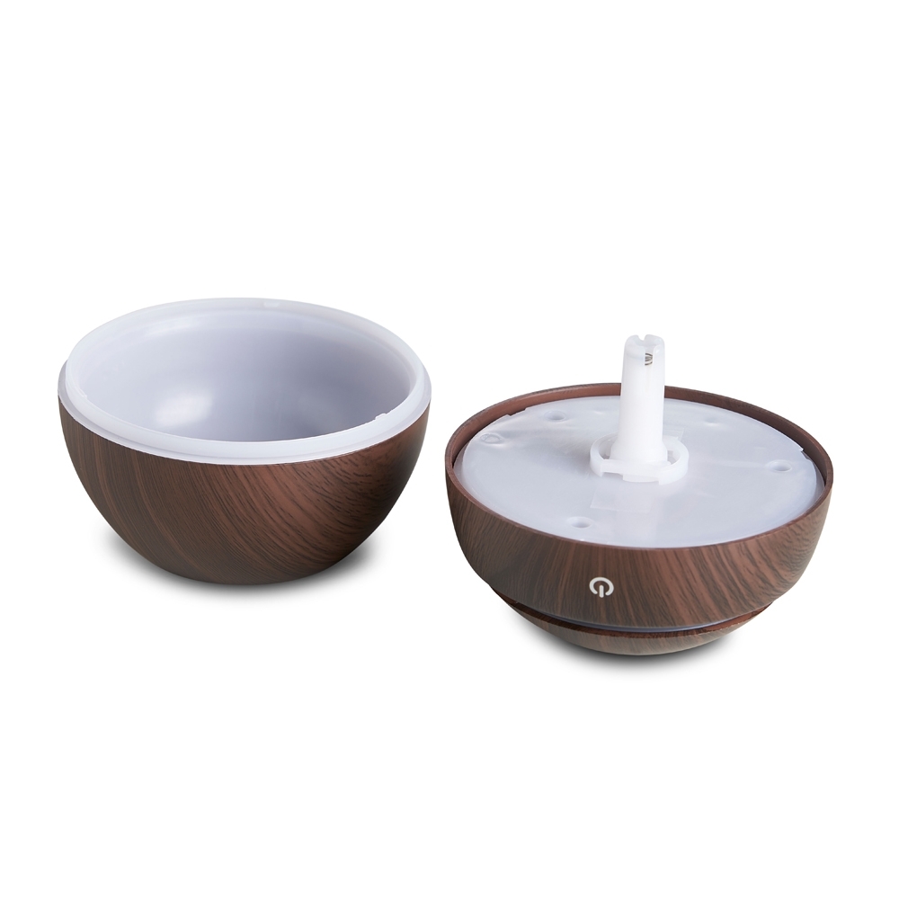 Descrição: Mini umidificador ultrassônico com led que muda de cor. Acompanha filtro de algodão e um cabo USB. Capacidade para 130ml de água. Produzido em plástico e revestido por adesivo caracterizando madeira. Taxa de tensão DC5V e Taxa de consumo de 2W. O produto não retém energia, funciona somente com o cabo USB conectado a um meio de alimentação de energia. Obs.: para conservação do produto é recomendável utilizar água filtrada e não deve ser usado essências!